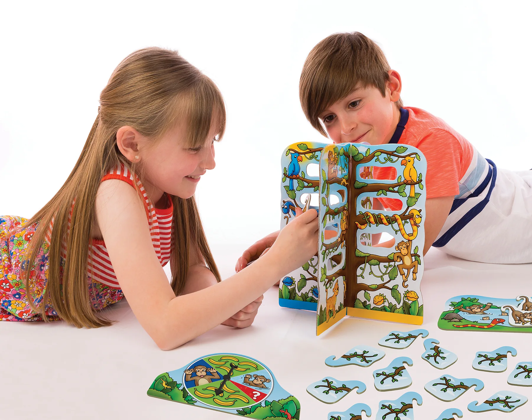 Играта съдържа 1 3D дърво от две части, 32 карти с маймунки, 1 дъска с басейн, 1 въртяща се дъска, 1 спинер от две части (отдели пластмасовата стрелa от основата и я прикрепи към въртящата дъска). Играчът с най-много банани в края на играта е победител. Играта насърчава уменията на езика и изразяването. Стимулира и развива изчислителните умения. Насърчават разпознаването на цветовете. Изграждат усет за форма и еднаквост. Развиват способностите за картографиране и памет. Насърчават наблюдателните умения. Развиват знанията и разбирането за причина и следствие. Развиват координацията на ръцете и очите. Развиват личните и социални умения. Насърчава въображението в играта.