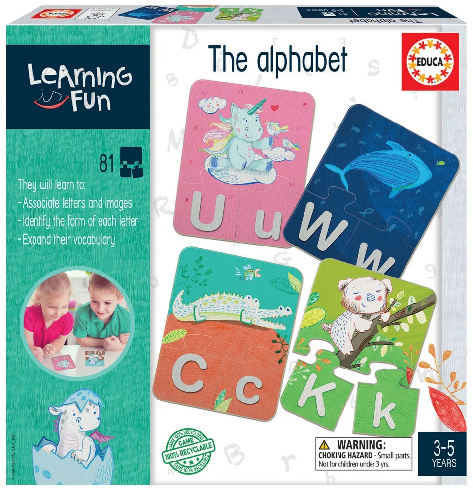 С тази забавна игра на асоциации децата ще се запознаят с азбуката. Сглобявайки различните части заедно, малките ще открият всяка една от буквите, както главни, така и малки. Те ще се научат да: · Свързват букви и изображения · Разграничават графиките на всяка буква · Разширяват своя речников запас. Съдържание: 78 взаимосвързани части, които образуват 26 дъски, инструкции. Изцяло на английски език