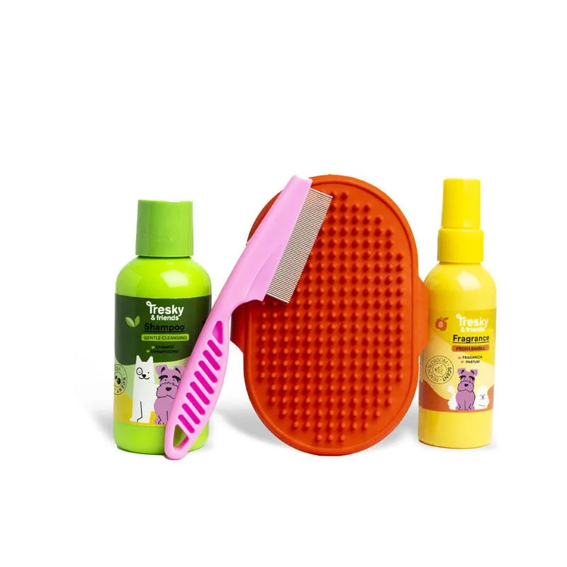 Подаръчен комплект за домашен любимец, Martinelia, Tresky & Friends, С гребен и четка, 4 части