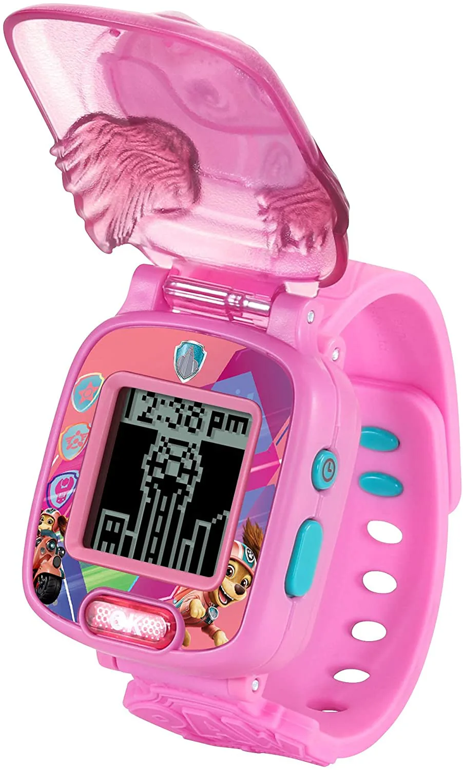 Присъединете се към екипа на Скай и спасителния екип на Paw Patrol с този забавен аксесоар. Часовникът не само ще ви показва часа, но има и аларма, таймер и хронометър. Има и 4 вградени игри. Часовникът включва 10 сменяеми циферблата, както и светлина! Време е да се присъедините към спасителния екип! Подходящо за деца над 3 години.
