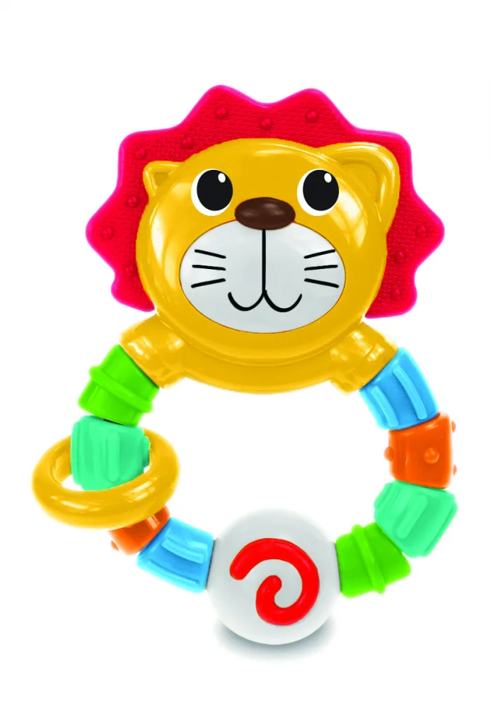 Това лъвче е идеалната играчка за малки ръчички. Меката грива е идеална за никнене на зъбки. Лесната за хващане дръжка е с въртящи се цветни пръстени.