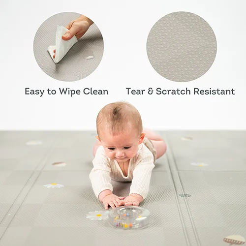 Създадена, да издържи на най-трудните предизвикателства в живота, тази ултра издръжлива подложка от пяна с омекотена повърхност осигурява максимален комфорт за бебетата по време на игра, предпазвайки ги, докато се преобръщат и пълзят. Подложката е водоустойчива и се почиства лесно.