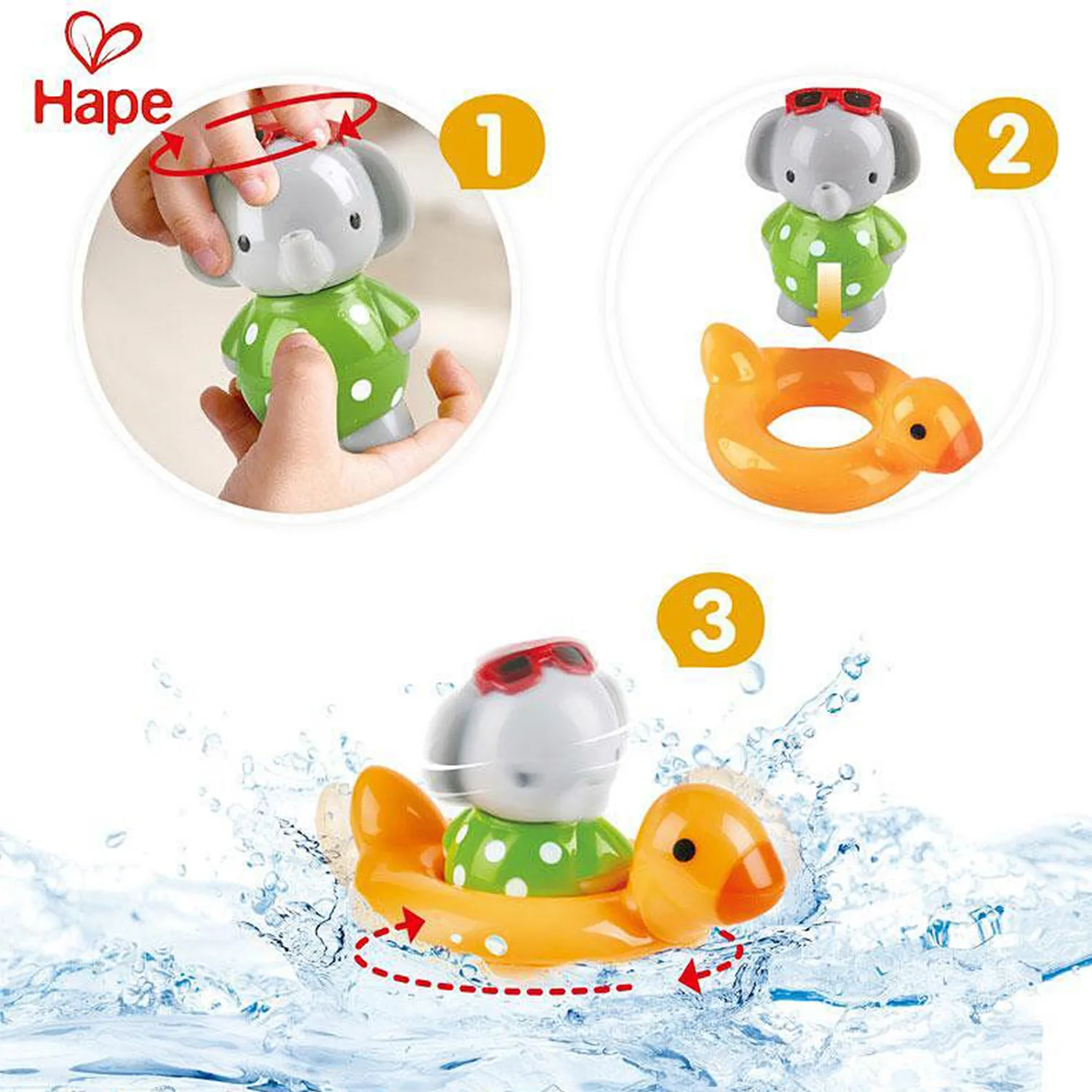Играчка за баня Hape, Въртящо се слонче с пояс, променящ цвета си