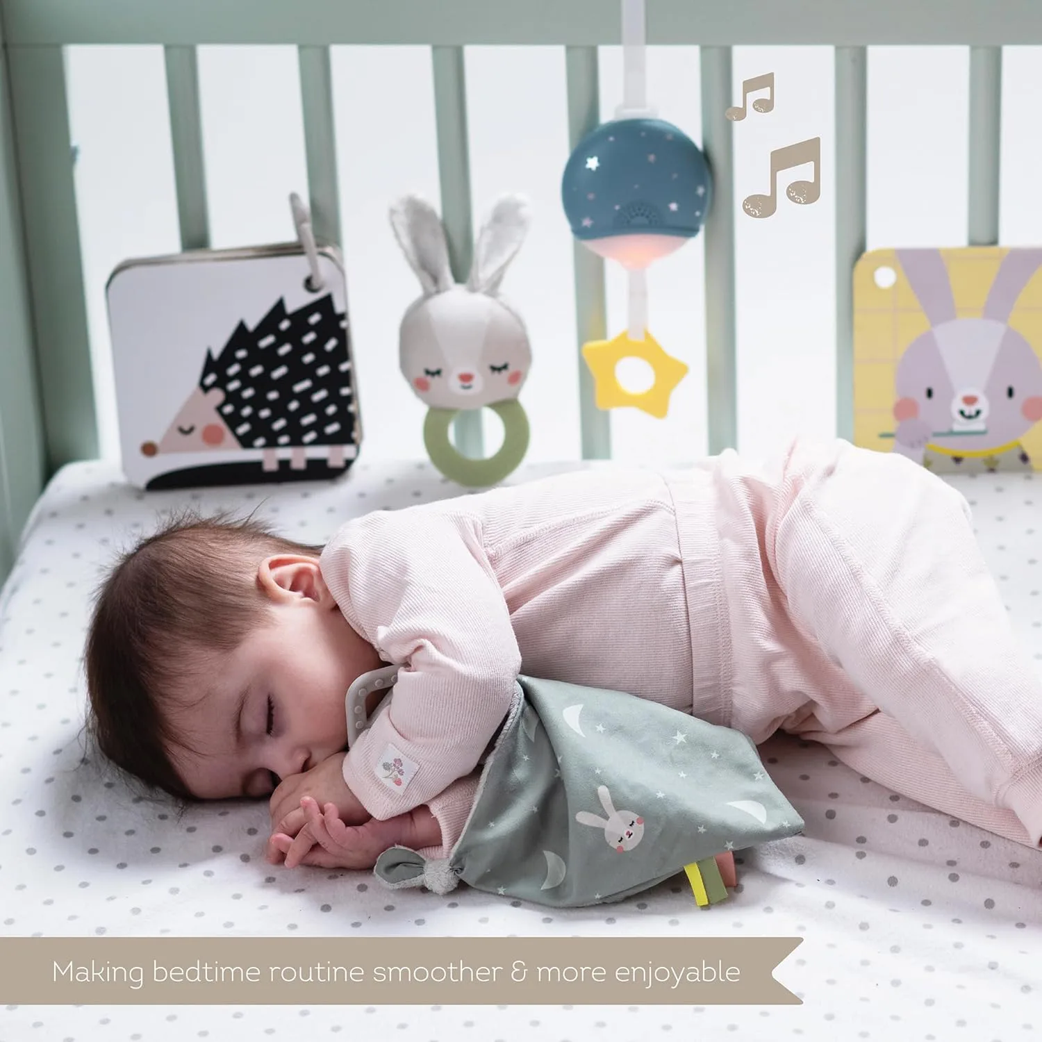 Музикална светеща играчка, мека силиконова четка за никнещи зъбки, мека играчка за гушкане-зайче, 7 двустранни флаш карти (14 изображения).