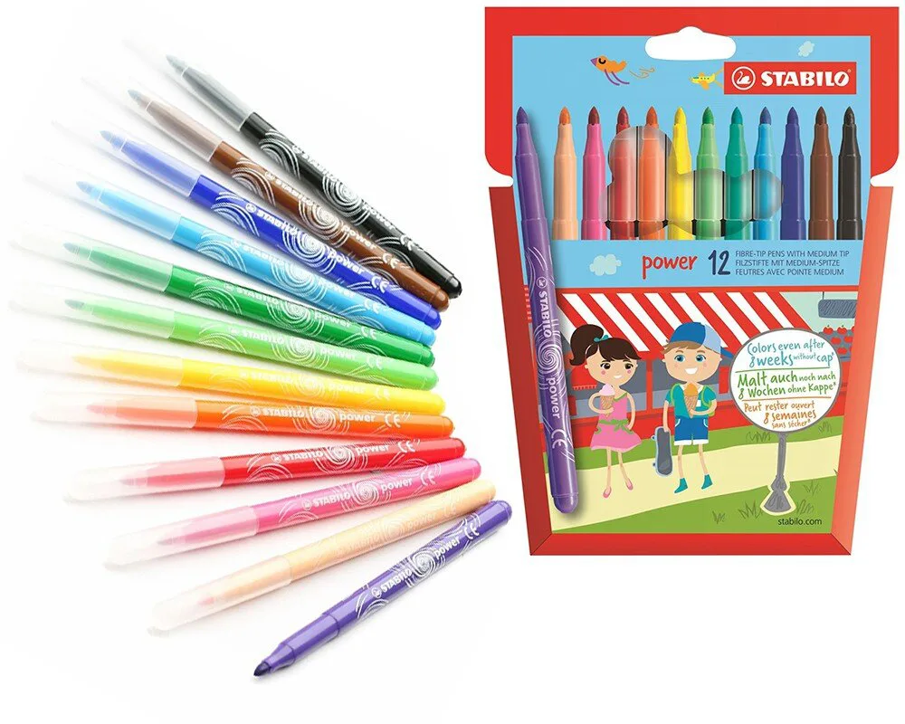 Комплект флумастери, Stabilo, Power, 12 цвята