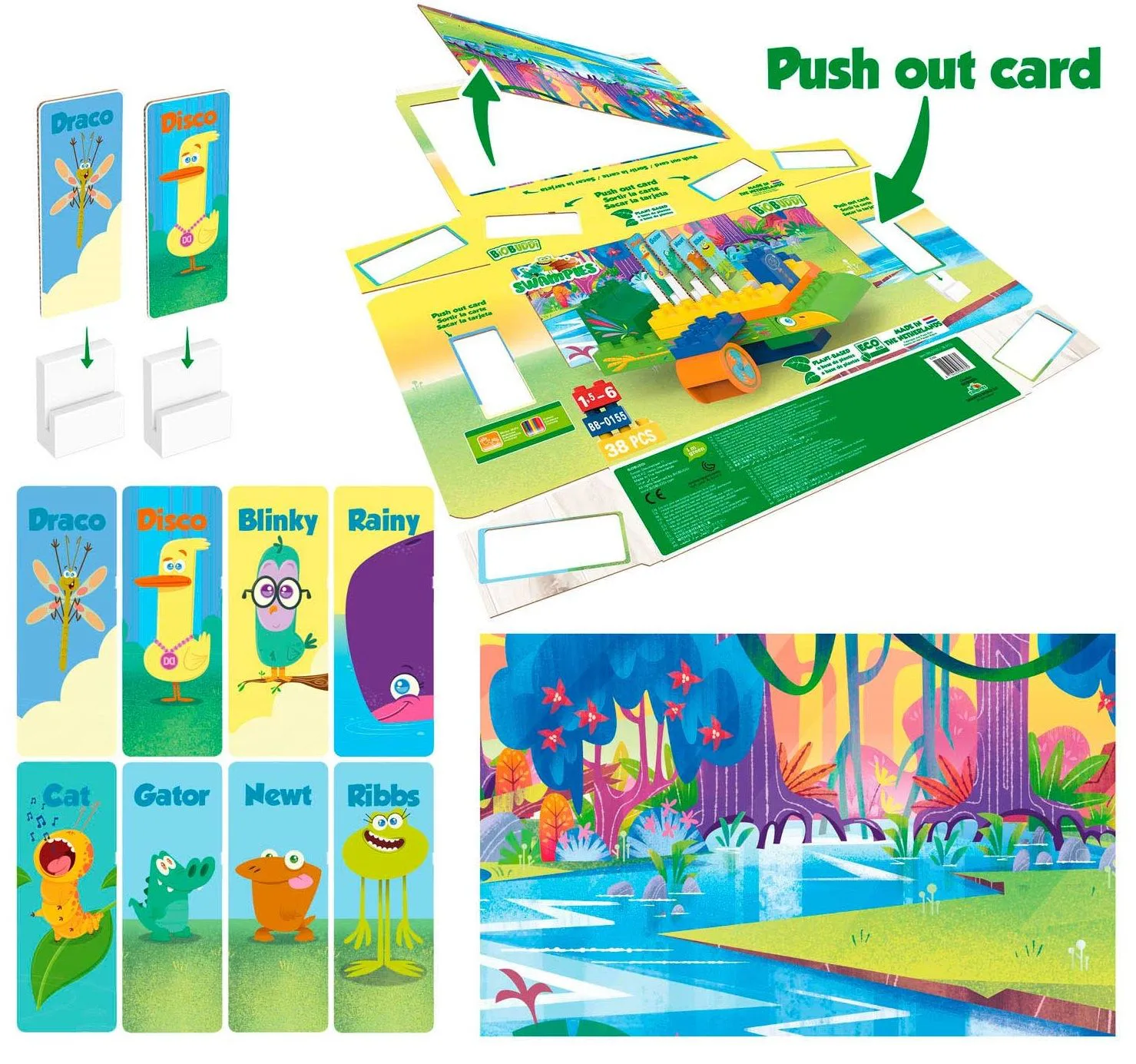 Конструкторът съдържа 38 части, изработени от биоразградима пластмаса.