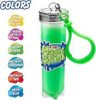 Слайм – Ключодържателя се предлага в 6 различни цвята, всеки по 25 грама. Без мирис, без BPA и глутен. Дерматологично тествани, и са оценени с “Много Добро”. Продуктите от тази категория не оцветяват кожата или текстил.