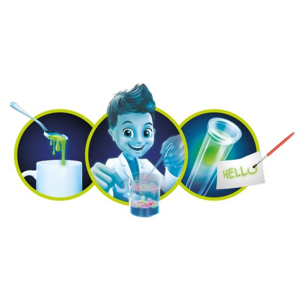 С този комплект ще можете да създавате експерименти, които светят в тъмното. Направете своя собствена флуоресцентна лампа, невидимо мастило, фосфоресцираща слуз. Включени: 3 цвята и UV лампа.