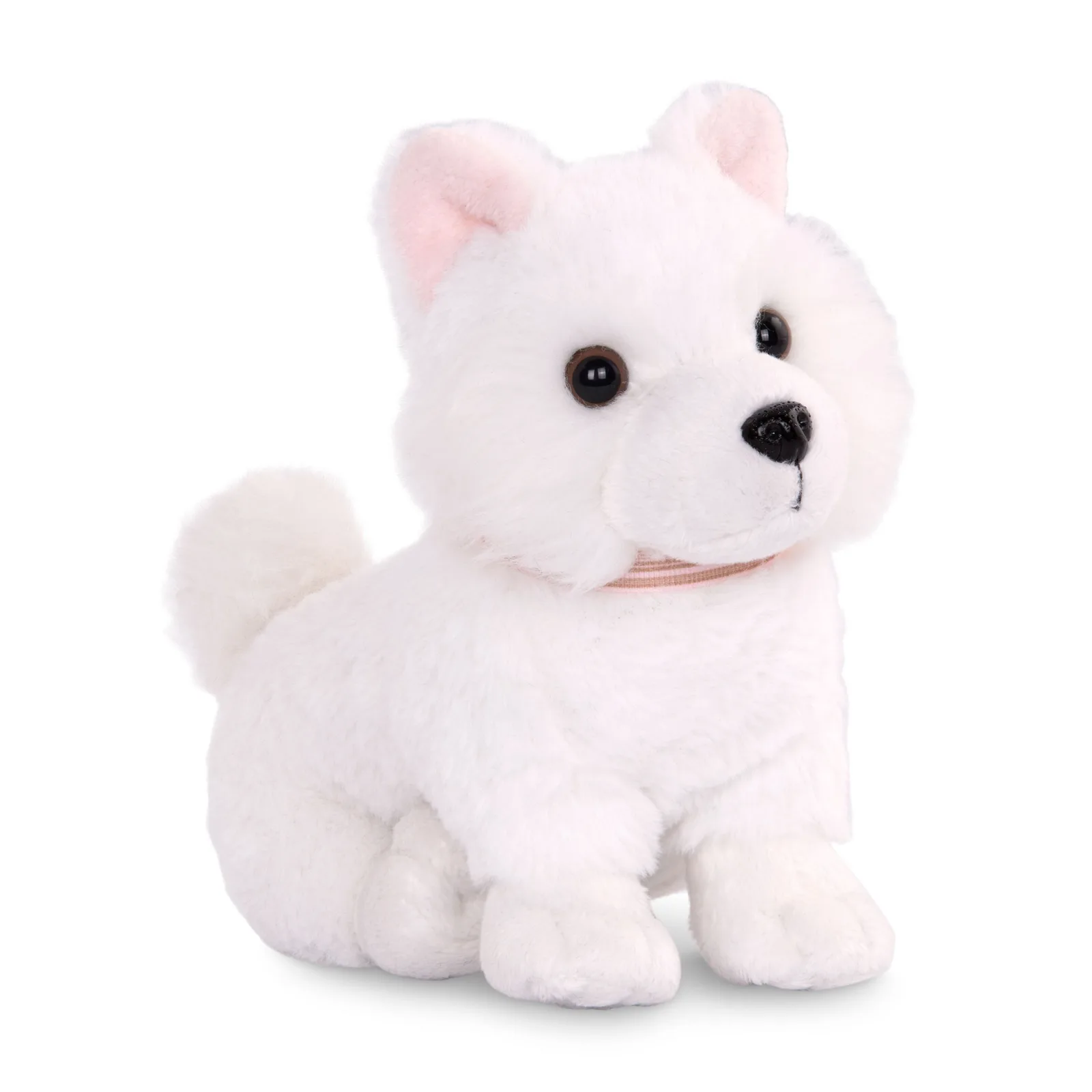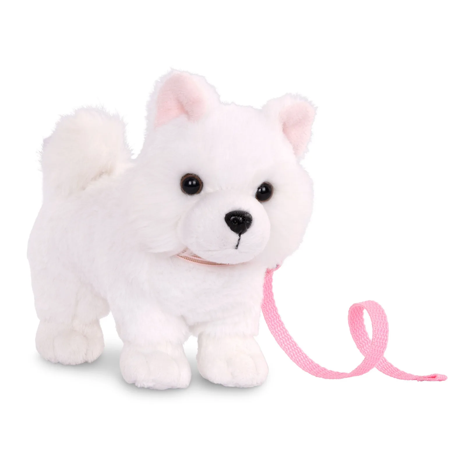 Планирайте приключение за двама с 15-сантиметровото американско ескимоско кученце от Our Generation! Този очарователен плюшен приятел има подвижни крака, така че вашето кученце може да се научи да седи, да лежи и да клати лапи! Пухкавата, бяла плюшена козина е супер мека. А включената каишка се закрепва към нашийника, когато е време за забавни разходки из квартала! Това весело, пухкаво кученце е перфектният компаньон и е точно с правилния размер, за да научи куклите ви как да се грижат за домашния си любимец.