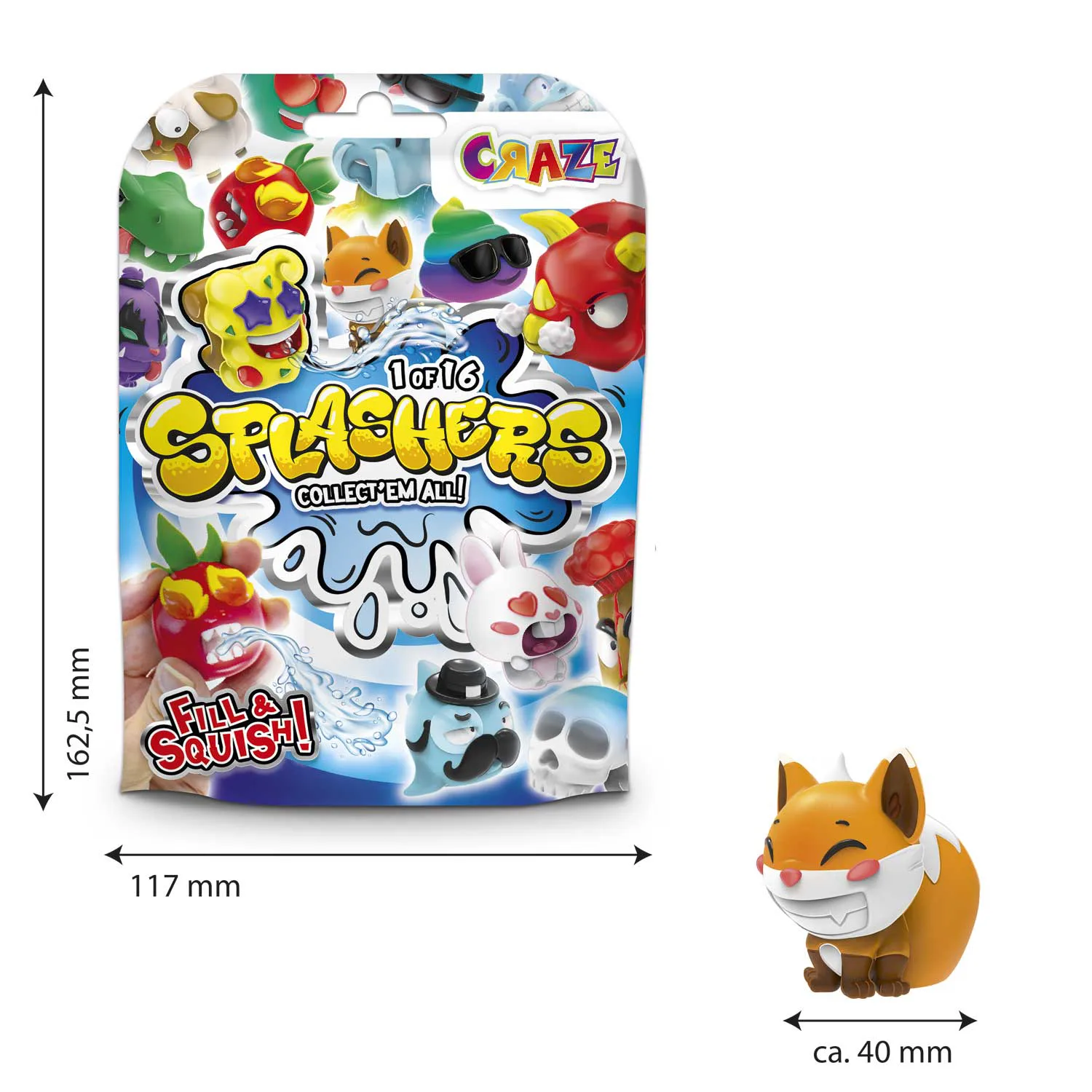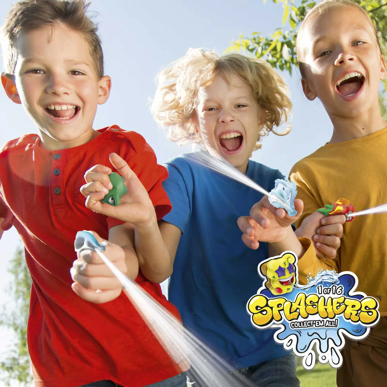 Открийте пръскащите вода животни SPLASHERS – за върховно, пръскащо забавление! Просто напълнете с вода и тръгвайте! Съберете 16 различни героя в торби от непрозрачно фолио, включително 4 супер редки. Вземете вашите SPLASHERS сега и изживейте вълнуващото водно приключение!