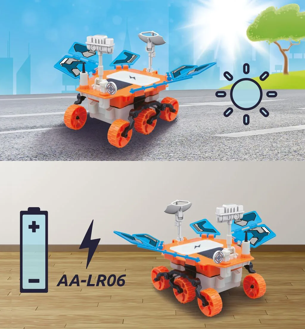 Сглобете марсиански роувър. Превозното средство се захранва от слънчева енергия, но може да работи и с батерия LR06-AA, която не е включена, така че можете да играете дори без слънчева светлина.