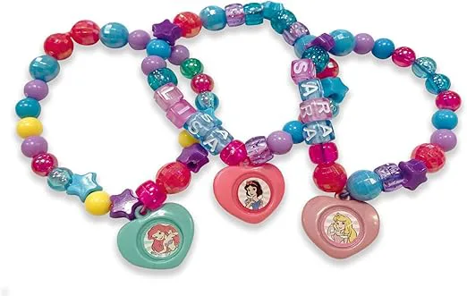 В тази скъпоценна кутия с формата на диамант ще намерите разноцветни мъниста и 5 висулки с любимите принцеси на Дисни, с които да направите сами гривни и колиета.
