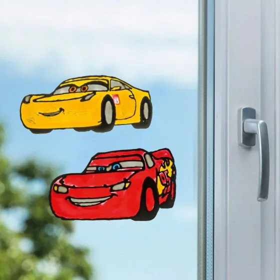 Творчески комплект, произведен от Totum, с които детето само може да създаде собствени стикери за стъкло с героите от „Колите 3“, с помощта на писалка и шаблони. В комплекта са включени: 6 тубички с боя; 1 комплект листове; 1 комплект покривни листове; Инструкции за работа. Подходящо за деца над 4 години.