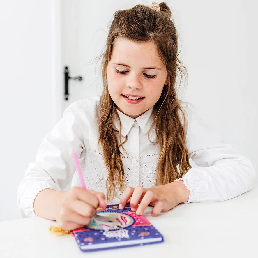 Пазете тайните в безопасност с тайния дневник с кончета! Този фантастичен комплект съчетава забавлението от диамантеното рисуване с поверителността на заключващият се дневник. Младите фенове на кончета на възраст над шест години могат да персонализират корицата на дневника, като поставят цветни блестящи скъпоценни камъни върху определените зони, включващи стилни изображения на кончета.